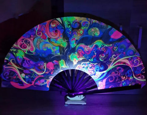 Fluorescent UV ink printing to make the fan glow beautifully under UV light (party black light) and the colours never fade.