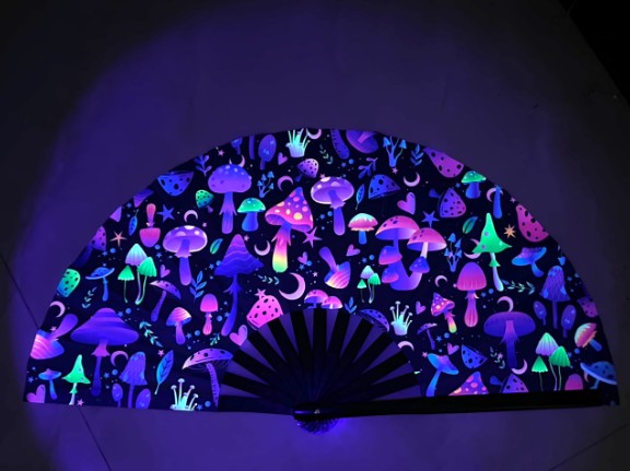 Fluorescent UV ink printing to make the fan glow beautifully under UV light (party black light) and the colours never fade.
