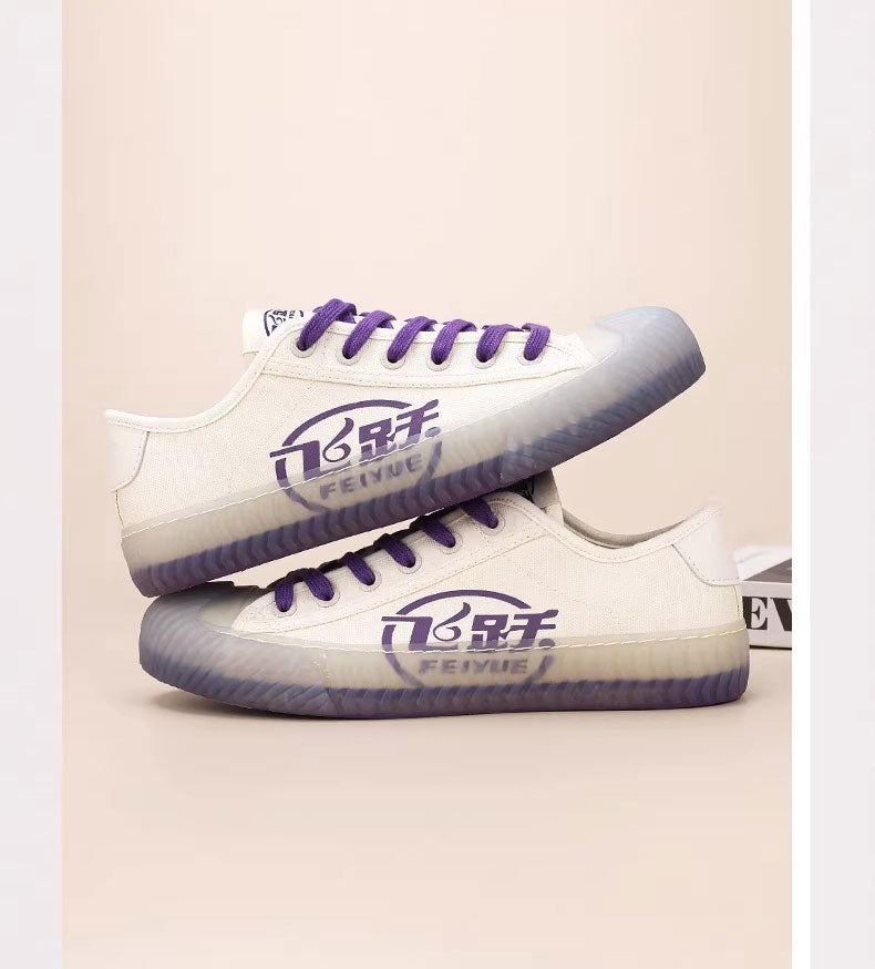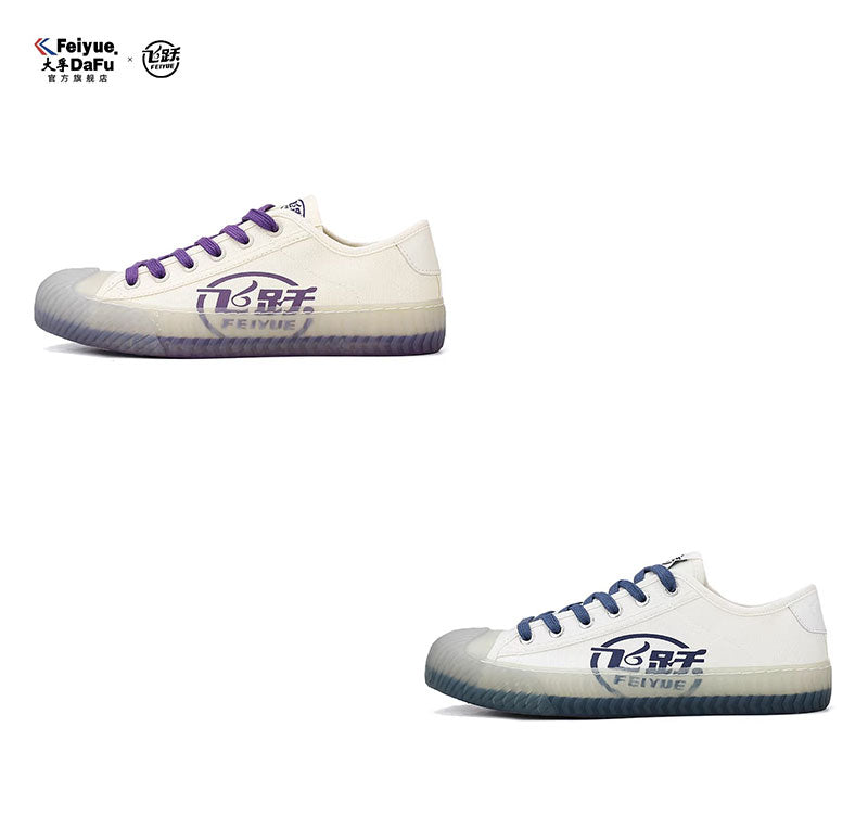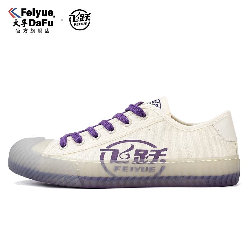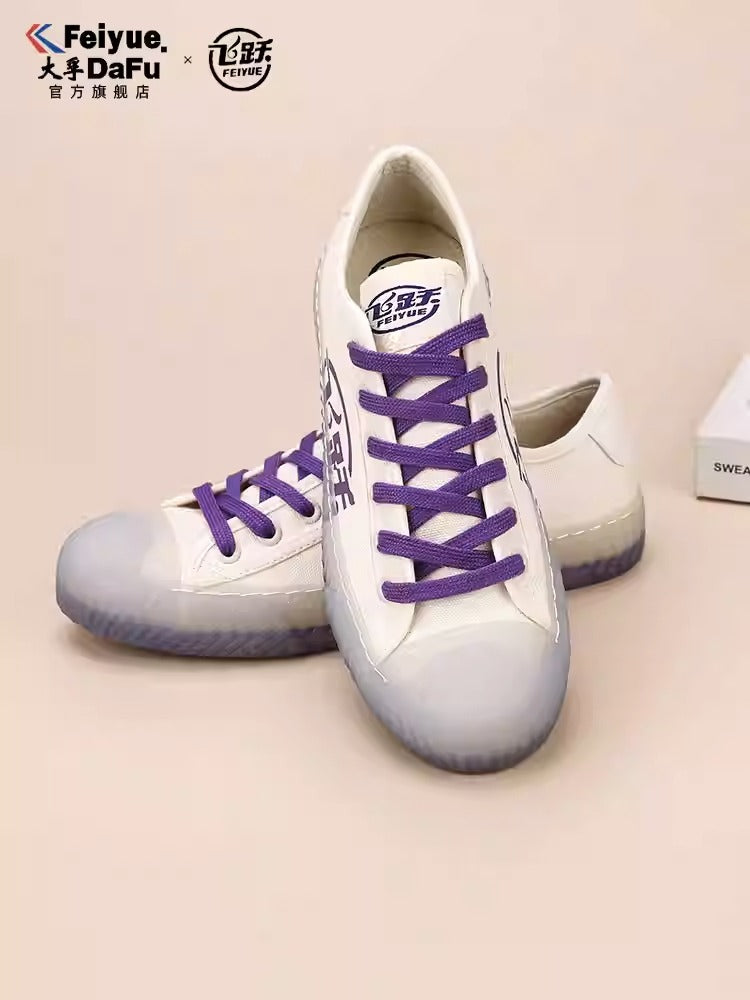 The DAFU FEIYUE canvas sneaker, which are iconic Chinese footwear known for their robustness and comfort since the 1920s. Specifically, these appear featuring unique colorways and translucent corrugated rubber edges.