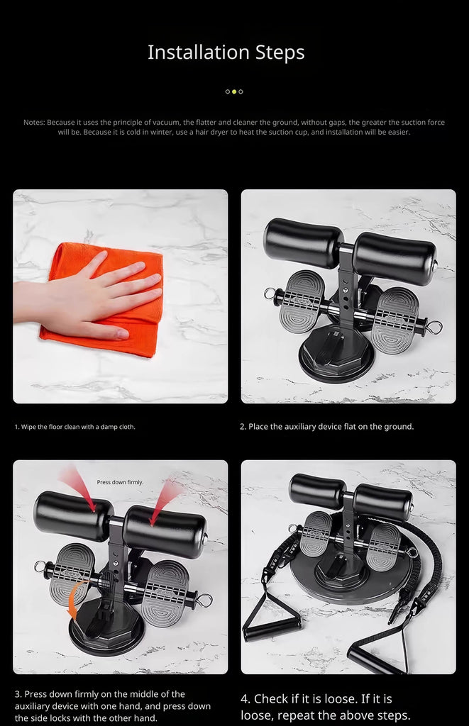 Multifunctional Adjustable AB Trainer Sit-Up Assist Device with Double Suction Cups & Resistance Pull Cord 2 Colours