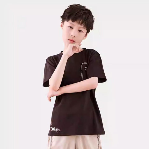 Traditional Chinese-inspired Kirin embroidery T-shirt and pants designed for both casual wear and martial arts training like Tai Chi.
