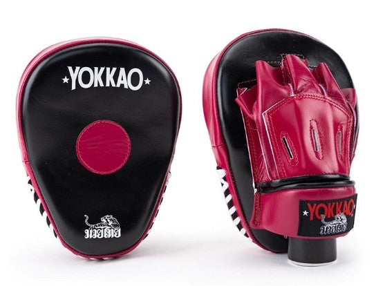 YOKKAO CURVED MUAY THAI BOXING MMA PUNCHING FOCUS MITTS PADS Leather Black Cerise