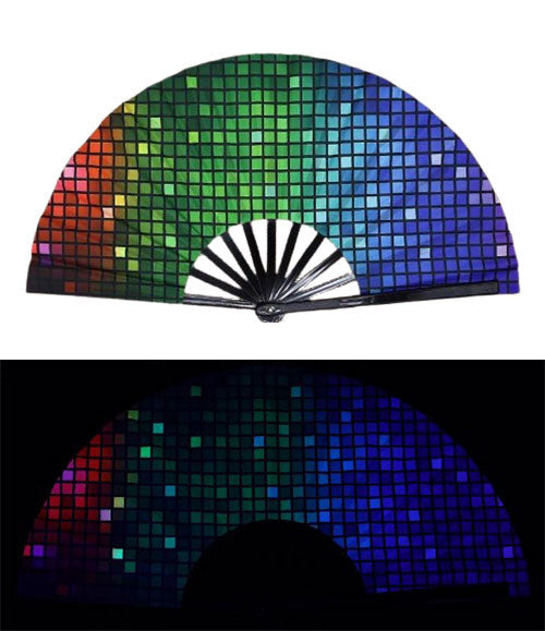 Carnival Party Dancing Performing UV Fluorescent Folding Hand Fan Bamboo Tangs 33 cm PF036