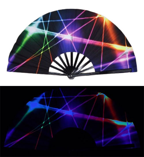 Fluorescent UV ink printing to make the fan glow beautifully under UV light (party black light) and the colours never fade.