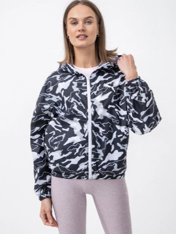 Relaxed fit windbreaker made of polyester material. Single-line back design from hood to back yoke. The all-over print of the camouflage pattern makes it a great addition to your modern sporty style. Water repellent