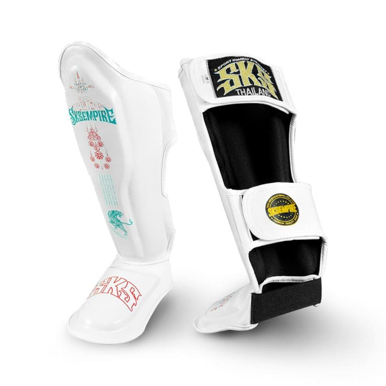Train with confidence and power in the SKS Empire Tiger Bomb Shin Guards, designed for fighters who demand maximum protection and authentic Thai craftsmanship. Handmade in Thailand, these Muay Thai shin guards combine durability, comfort, and cultural artistry—making them the perfect choice for both training and sparring.