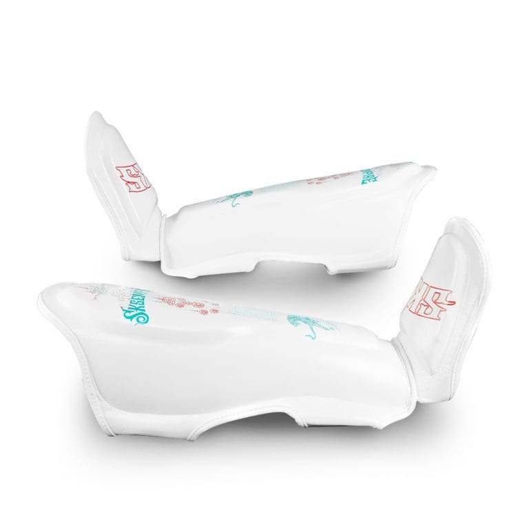 The Tiger Bomb design, inspired by the traditional double tiger Thai Yant, symbolizes strength and protection. With bold blue and magenta detailing, these shin guards bring a modern edge to a powerful Muay Thai symbol—helping you stand out while staying protected.