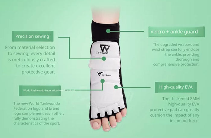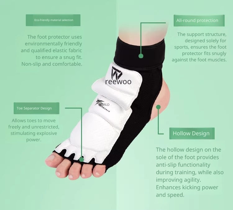 These Foot Protectors  are specialized TKD gear designed to protect the instep and ankle during training and competitions.