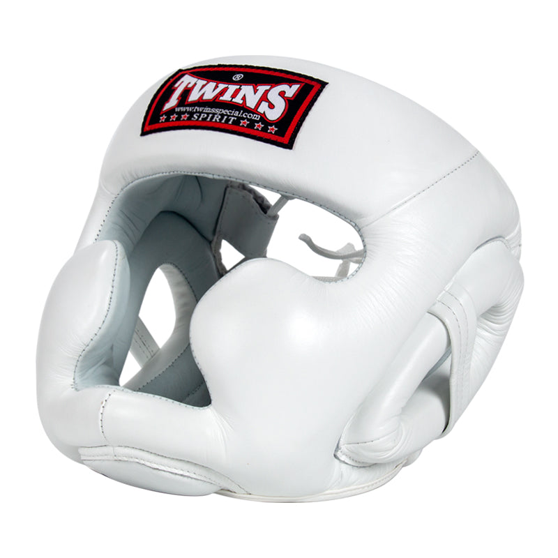 TWINS SPIRIT FULL FACE HGL-3 MUAY THAI BOXING MMA SPARRING HEADGEAR HEAD GUARD PROTECTOR LEATHER S-XL White