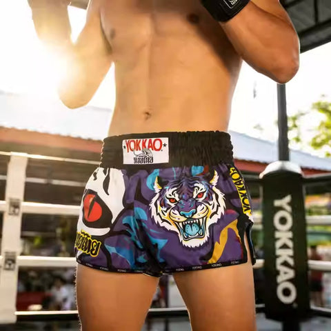 - Traditional Muay Thai cut with wide leg openings for unrestricted kicks