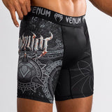Discipline and courage - we fight to the end. Introducing Venum Gladiator 5.0, the fifth edition of this bestselling range of combat gear and performance apparel.The Venum Gladiator 5.0 Men’s Vale Tudo Shorts are mid-thigh length compression shorts, designed to withstand the most intensive training. The fabric is lightweight and delivers a comfortable “second skin” effect. Compression fabric may promote muscle recovery during and after exercise.The striking black and silver design of these Vale Tudo shorts feature the Venum logo repeated at the elasticated waistband. Graphics across the front and back honor the legendary fighters of the Roman Empire. Pair them with a rashguard from the same collection.