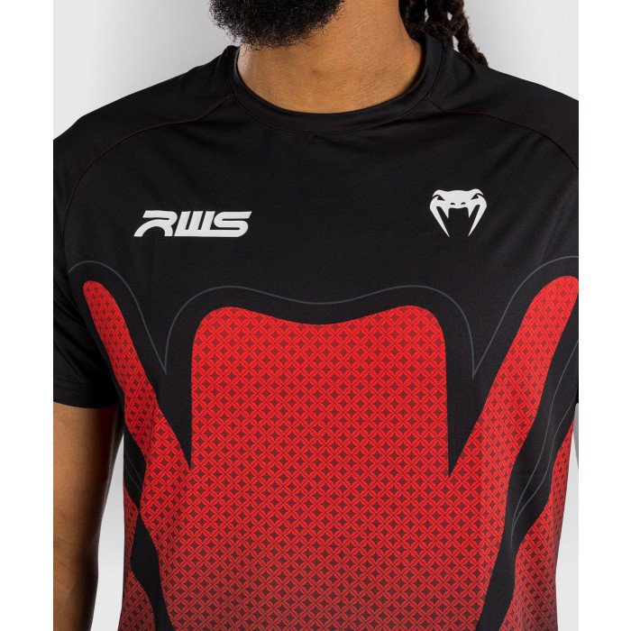 The Venum x RWS 2.0 Men’s Dry-Tech T-Shirt is a sweat-wicking performance shirt, ideal for your most intense training days. The design is bold, drawing on the clean outlines of Venum and RWS logos, while an intricate gradient motif honors the traditions of Muay Thai.
