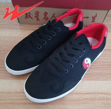"Double Star sports shoes are wide use among the Kung Fu Fighters. This model is great for traning, specially it's wear protection outsole makes the shoes durable. With Yin Yang logo at the side of the shoes represent it's features.
