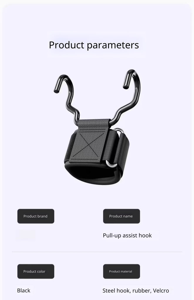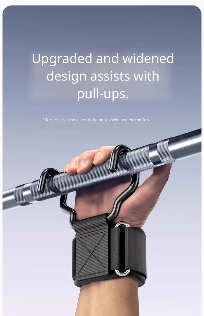 • Materials: The hooks are typically crafted from heavy-duty solid steel , often with a non-slip rubber coating for a secure connection to the bar. The wrist straps are  made from durable nylon webbing and feature thick neoprene Sponge padding for comfort and to prevent digging into the skin.