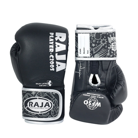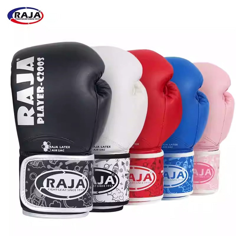 RAJA C200S LATEX AIR SAC MUAY THAI BOXING GLOVES Kids Size 6 / 6plus oz Black