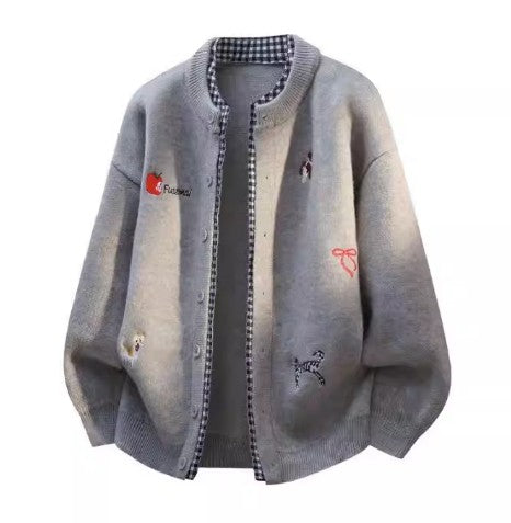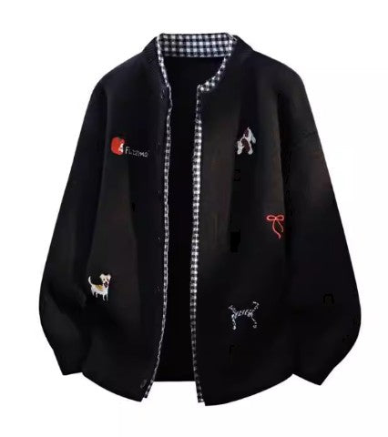 Feiyue Men's Knit Cardigans Sweaters Long Sleeve M-4XL Grey/Black