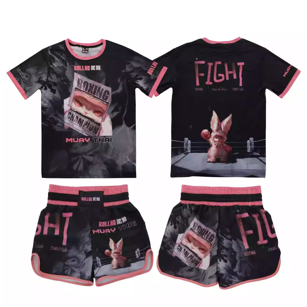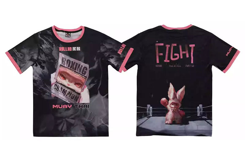 ROLLHO MUAY THAI BOXING RABBIT COMBAT SPORTS TRANING T-SHIRT RASHGUARD Unisex Size S-XXL