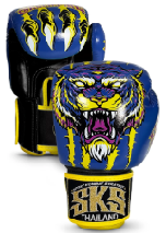 SKS Empire Colorful Tiger Muay Thai Boxing Gloves 10-16 OZ Blue