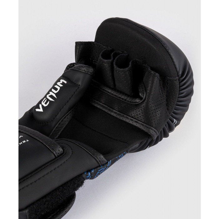 - 8 oz padding High quality injected foam guaranteeing optimal shock absorption Neoprene interior: sweat absorption Quality Velcro: for better wrist support Quality screen printing: unsurpassed service life Thumb attached to reduce the risk of injury Open palm VENUM & TEKKEN logos